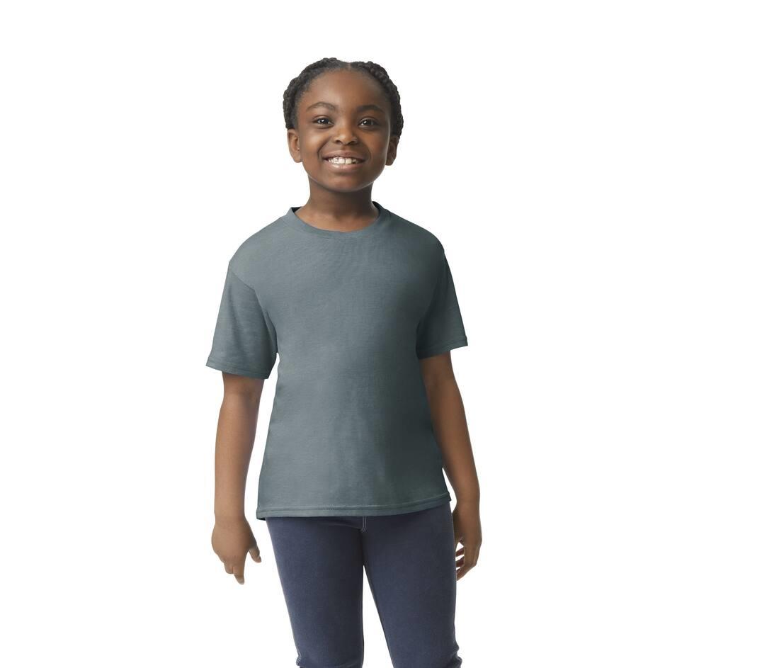 High stitch density for smoother printing surface. Taped neck and shoulders. Side seam construction for sizes YXS and YS. Tubular construction for sizes YM, YL, YXL. Twin needle sleeve and bottom hems. Quarter-turned to eliminate centre crease.