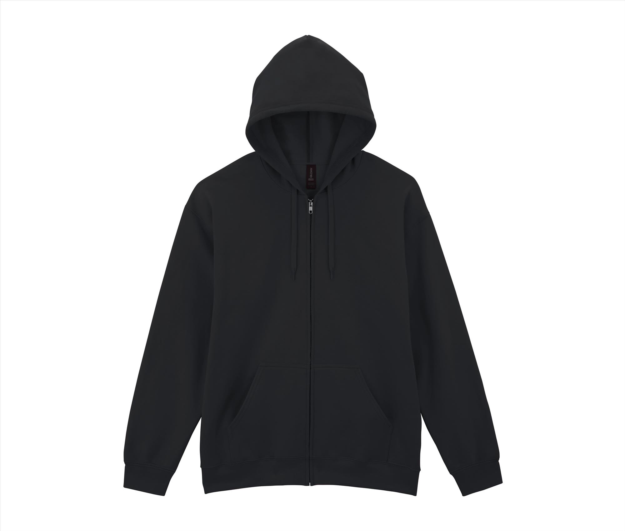 Cozy brushed inner. 2 piece colour matched jersey fabric lined hood. Metal zipper. Dropped shoulder. Pouch pocket. 1x1 rib with spandex cuffs and bottom band for enhanced stretch and recovery. Classic fit, seamless body.