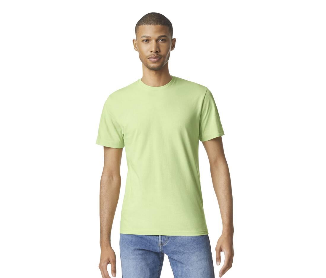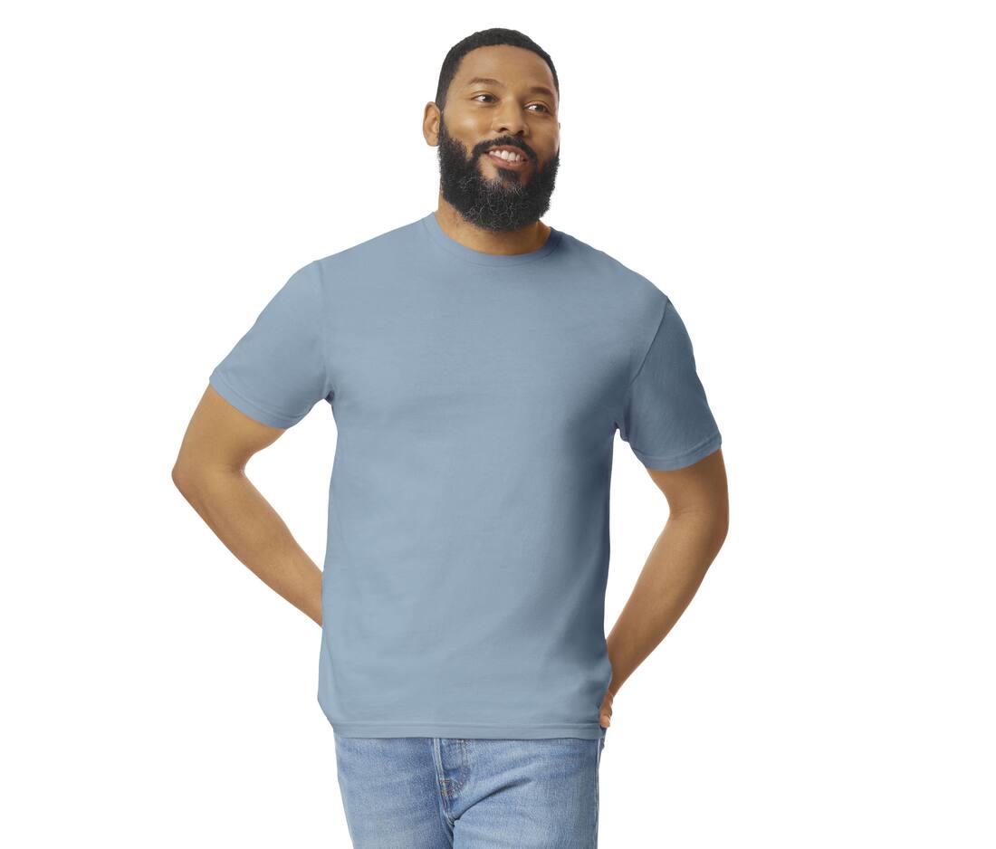 High stitch density for smoother printing surface. Seamless twin needle collar. Taped neck and shoulders. Rolled forward shoulder. Twin needle sleeve and bottom hems. Quarter-turned to eliminate centre crease. Oeko-Tex standard 100 certified.