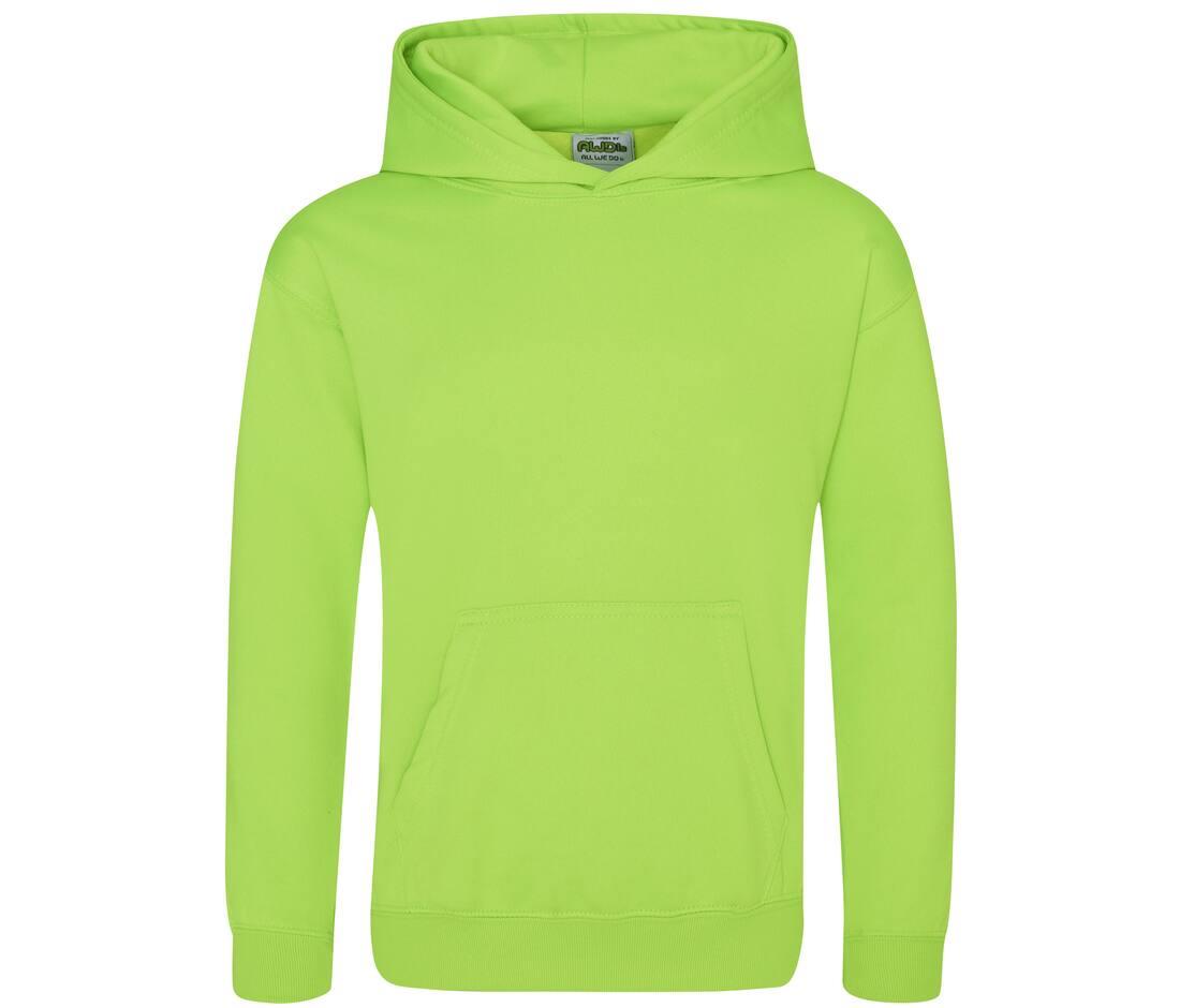 Standard fit. Vibrant eye-catching colours. No drawcords. Kangaroo pouch pocket. Brushed inner fleece. Twin needle stitching detail. Tear away label.