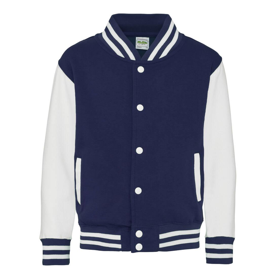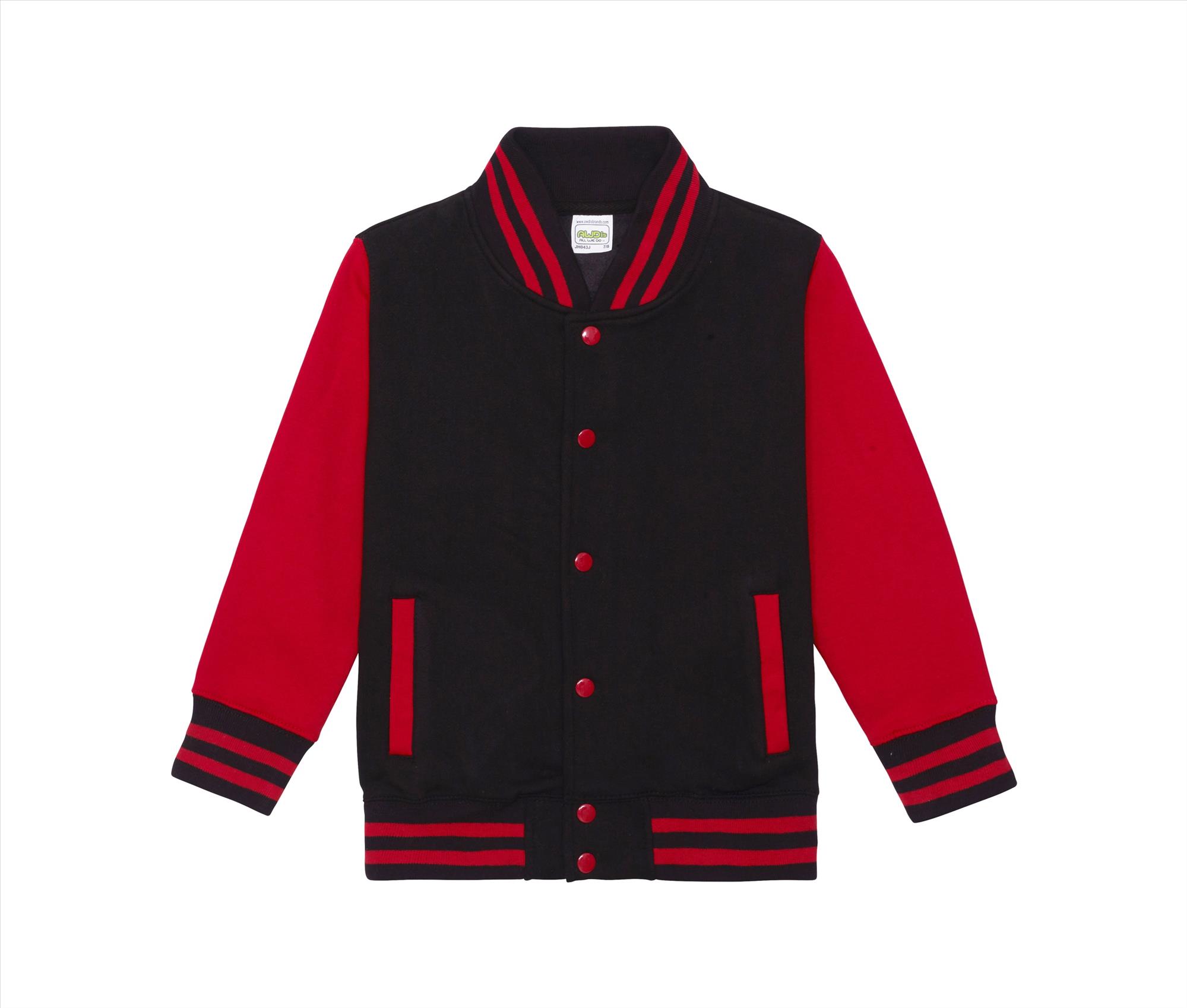 This kids varsity jacket is made in a sporty American style. It features a classic fit with contrast sleeves and a front popper fastening.