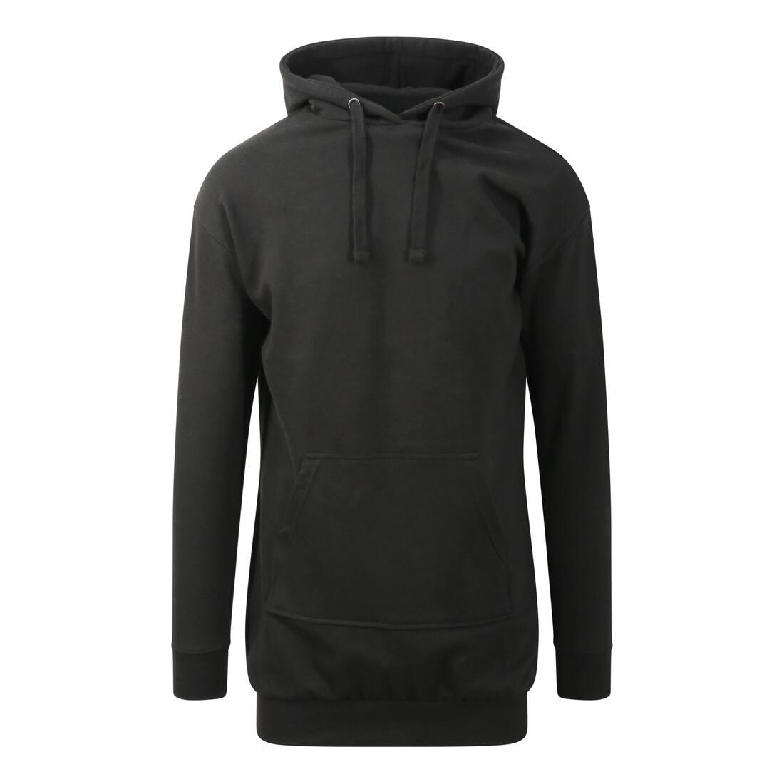Relax in style with this longline hoodie. Pair with leggings or jeans for a laid back look. Features cotton faced fabric, set in sleeves and Kangaroo pouch pocket.