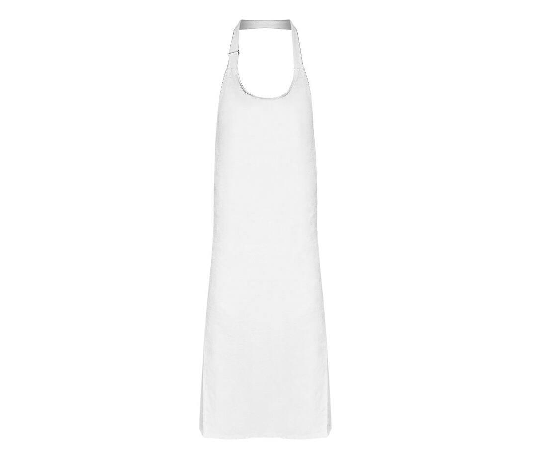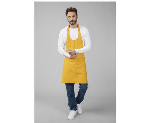 Apron without pocket. Height: 90cm, width: 75cm. Washable at 60°.