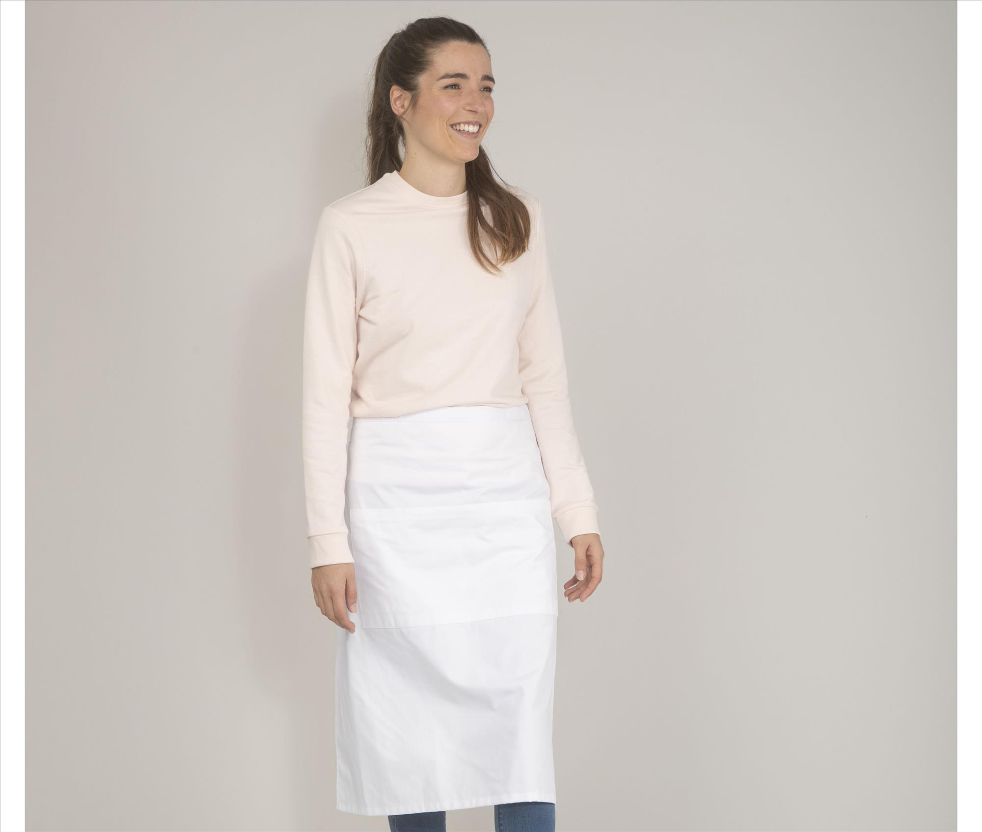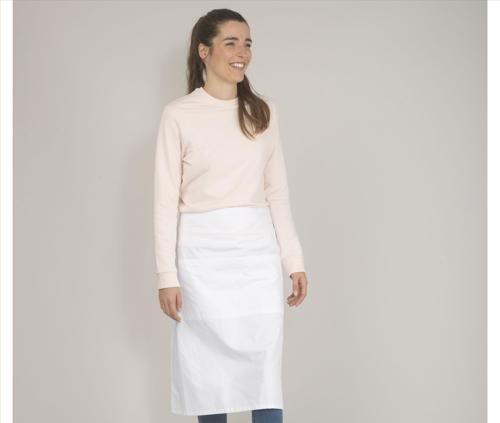 Long barman apron, 3 pockets. Height 62cm - Width 90cm. Washable at 60°.
