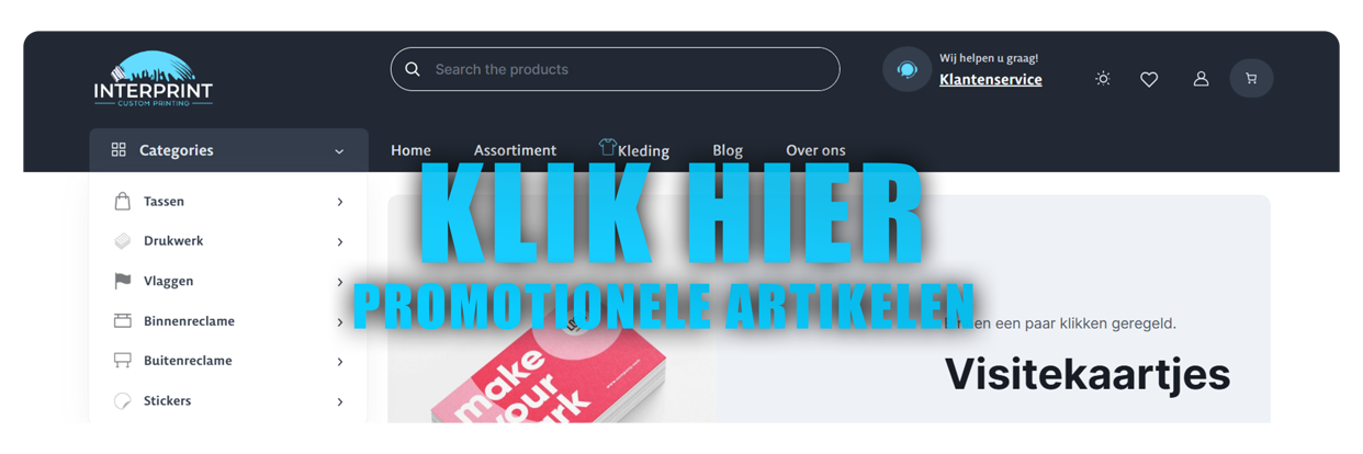 Voor promotionele artikelen kun je eenvoudig terecht via onze speciale webshop: interprint-promo.nl.