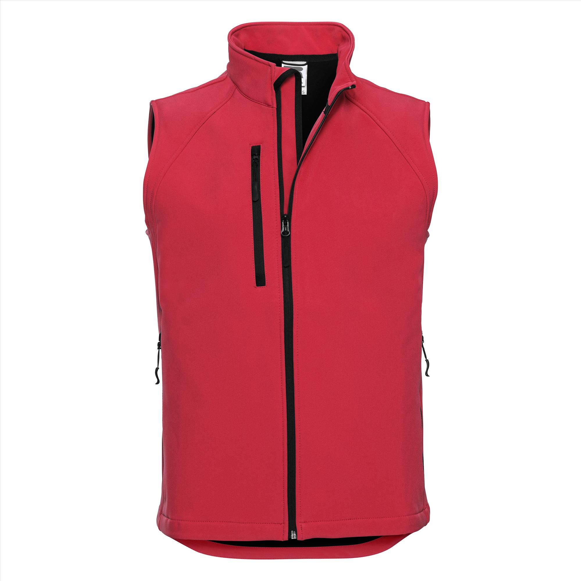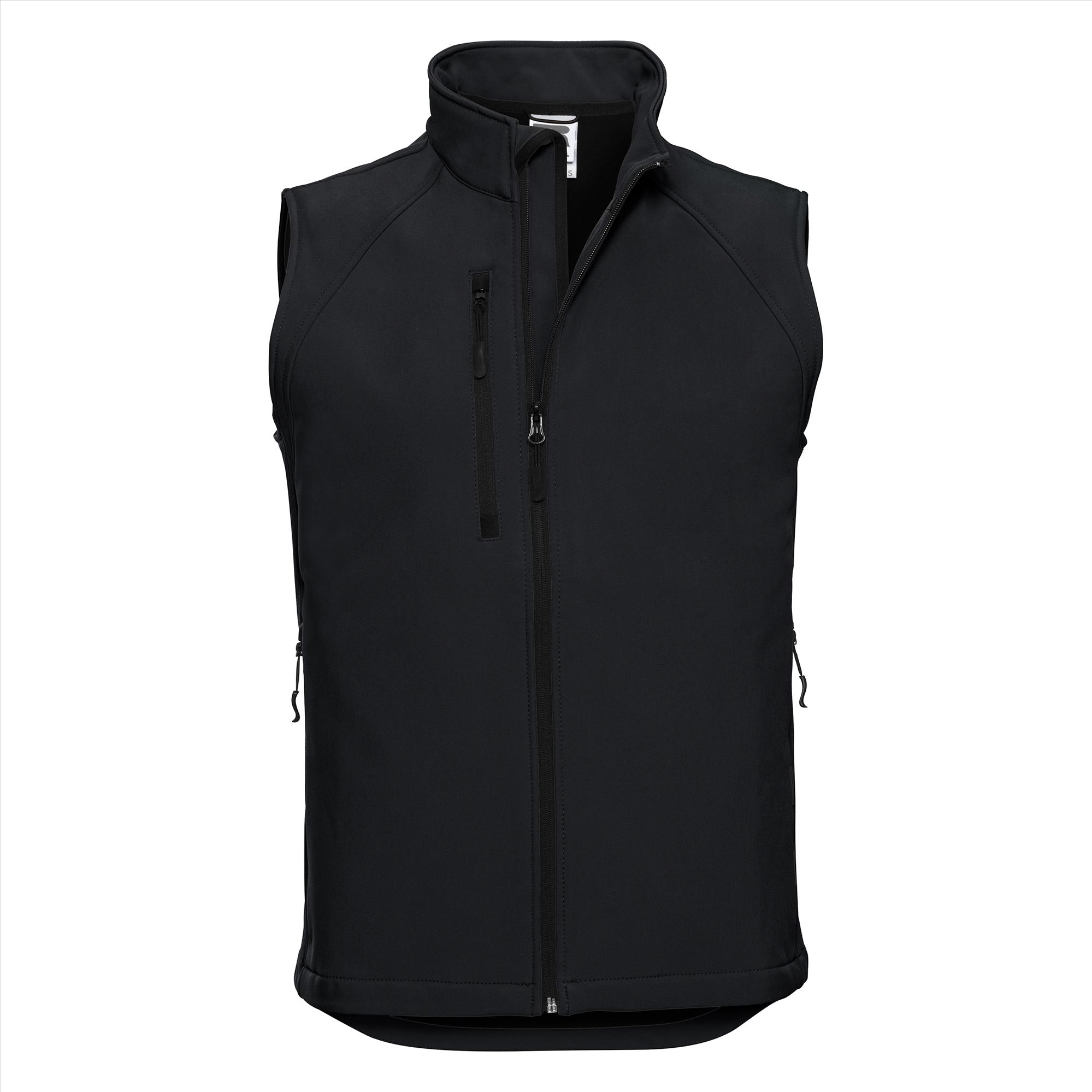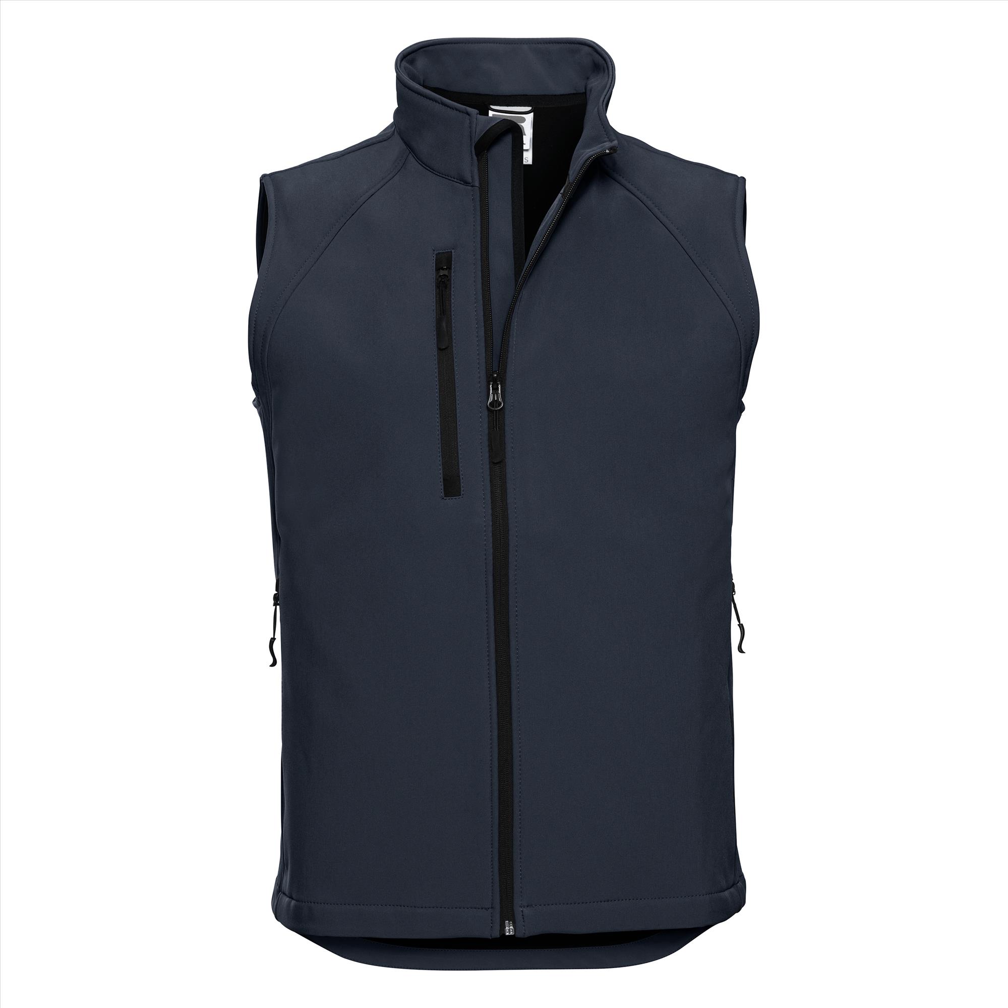 Trendy heren softshell bodywarmer voor dagelijks gebruik, heeft een verlengd rugband en kinbeschermer.