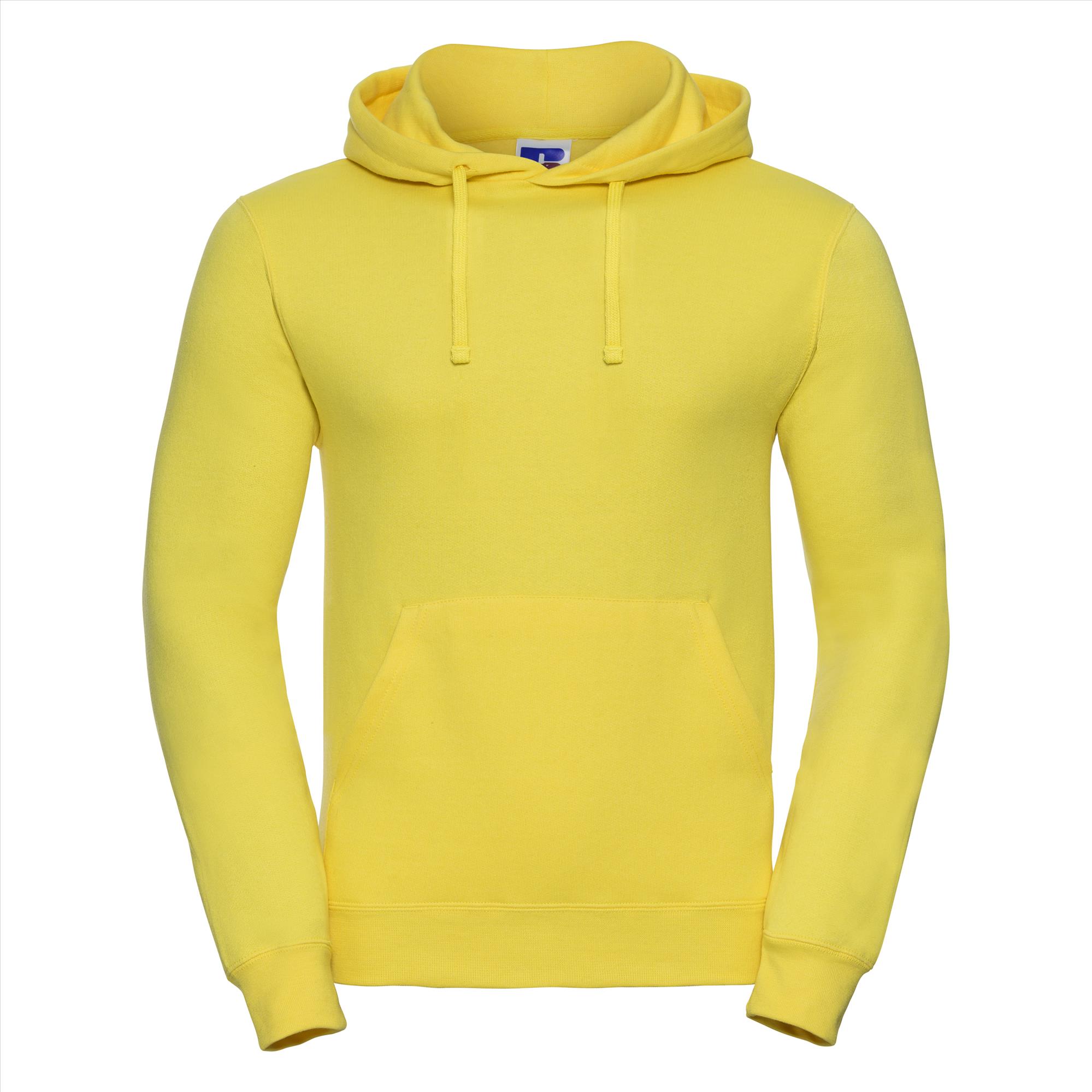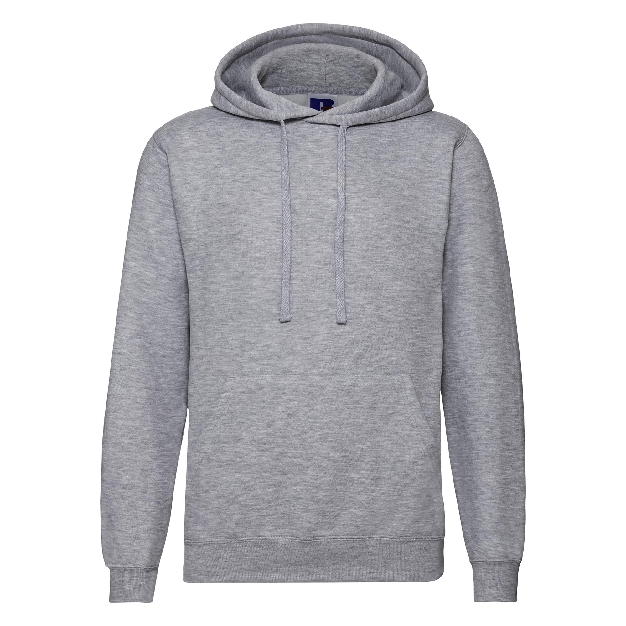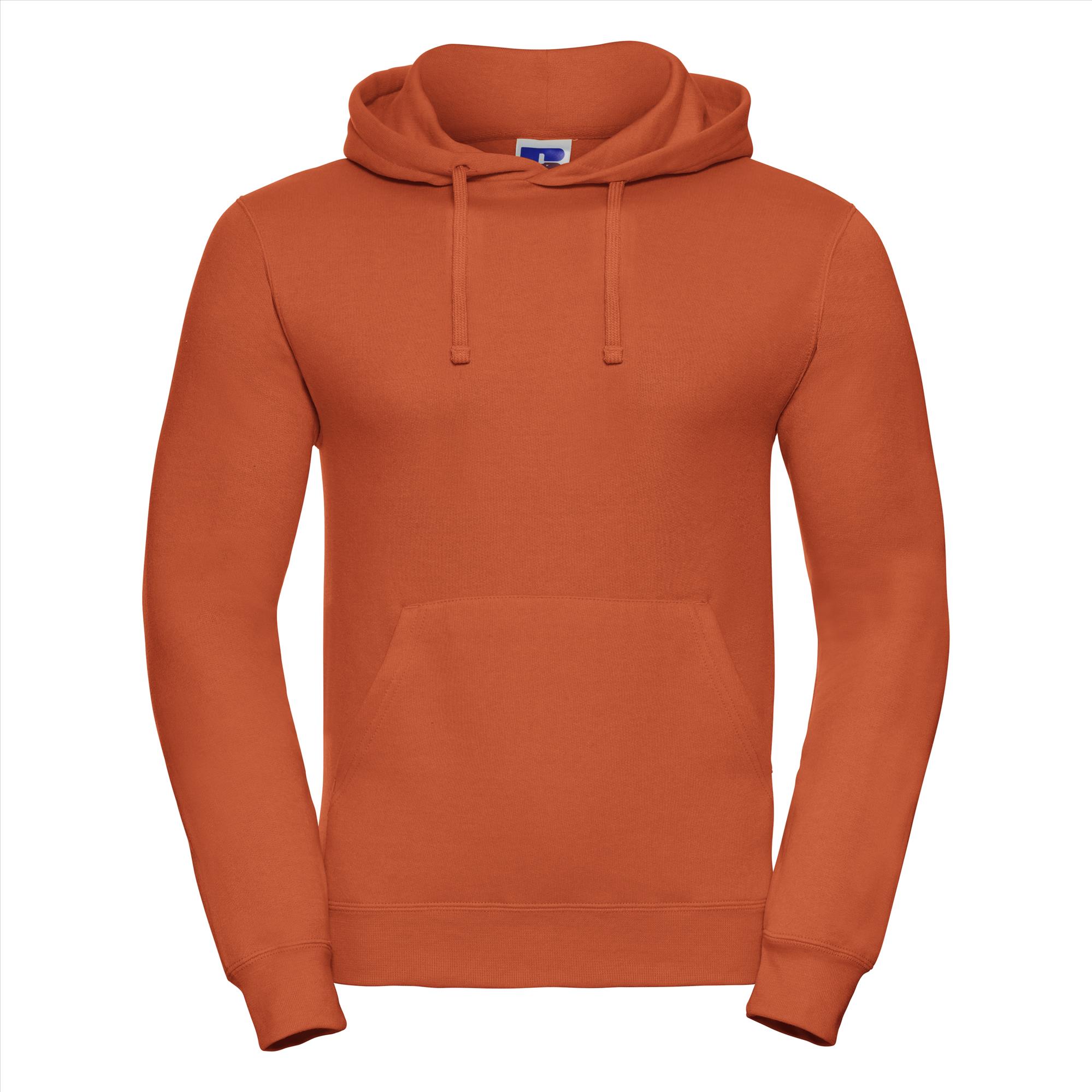 Deze redelijk lichte hoodie met een plat stevig trekkoord en visgraat necktape is door de samenstelling katoen/polyester erg fijn om te dragen en blijft mooi ook na vele malen wassen. Je krijgt een mooie look door de smallere schouders en mouwen.